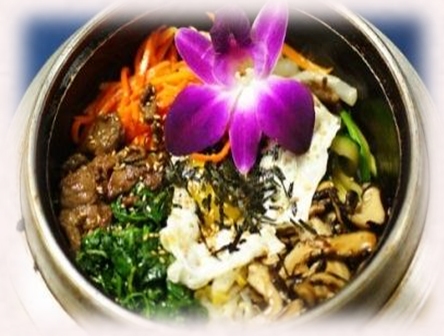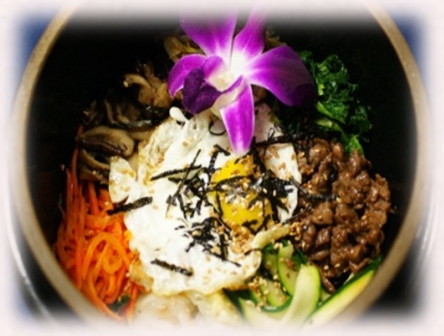 Vegetable Bi Bim Bop served in a hot Stone pot.